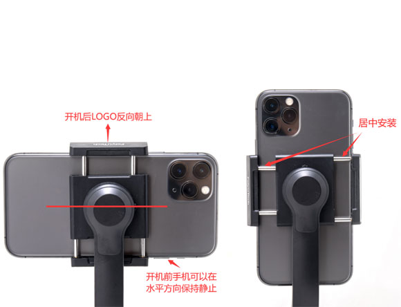 微调手机位置,确保开机前手机可以在水平和垂直角度下,可以保持静止,如图所示: